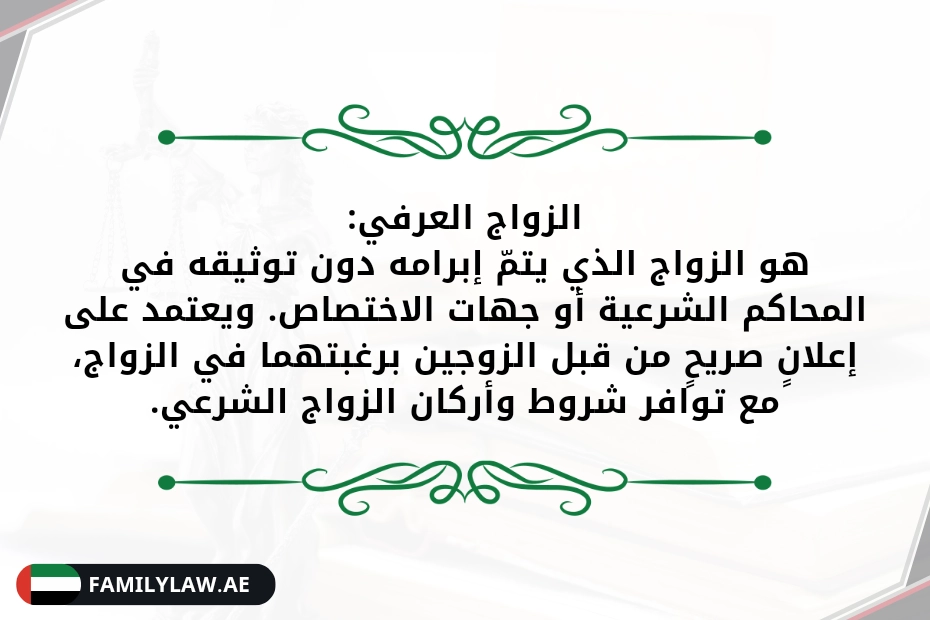 إن الزواج العرفي هو ظاهرة اجتماعية مُنتشرة في العديد من الدول العربية، بما في ذلك الإمارات. ونظرًا لعدم توثيقه رسميًا، يُثير العديد من التساؤلات حول شرعيته وآثاره القانونية.