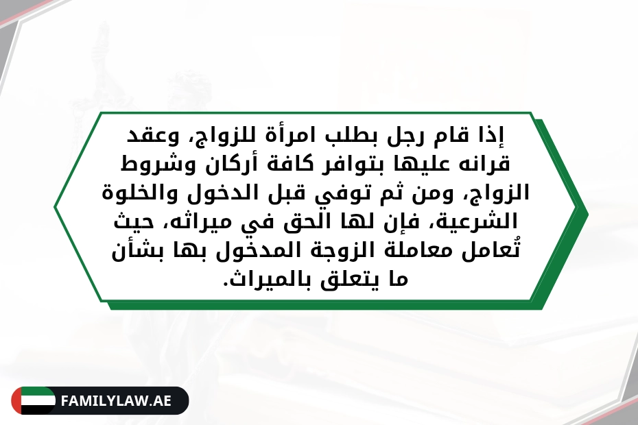 أحكام ميراث الزوجة قبل الدخول بها في دبي.